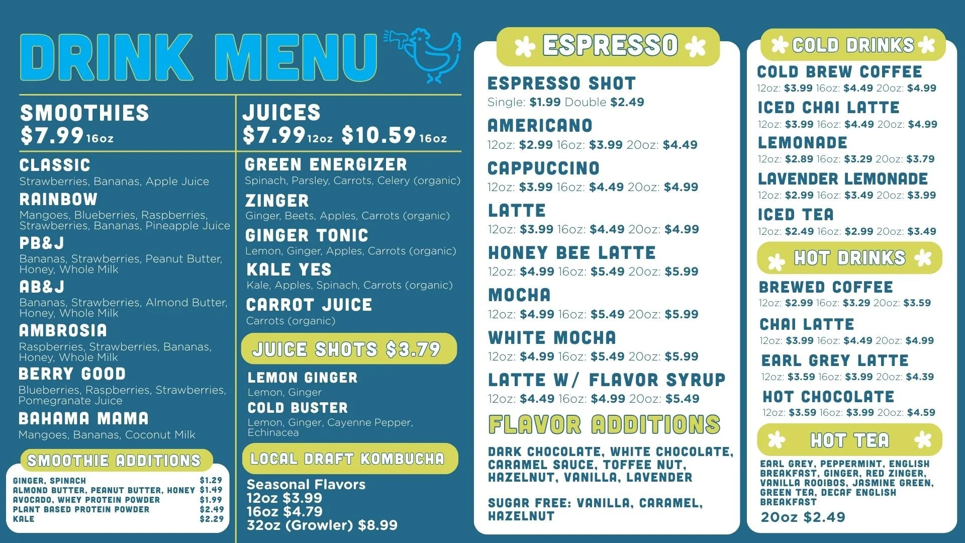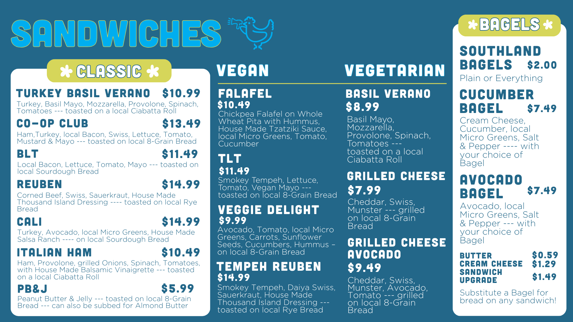 The Hot Bar is open Monday - Friday (11am - 8pm). During the week there is also a small selection of breakfast sandwiches and burritos, beginning at 8am. Every Saturday and Sunday, the Hot Bar is open for Brunch 10am-8pm.